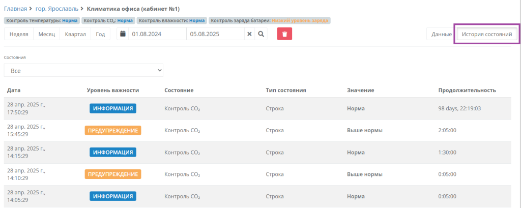 12. При просмотре показаний конкретных Объектов теперь можно изменять отображаемые поля в таблице под графиком. Настраивать отображение таблицы – через нажатие кнопки “Настройки таблицы”.